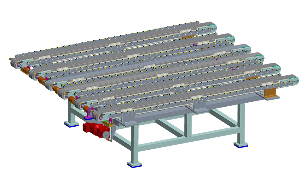 Conveyer belts are used to transport depalletized sheets picked up by robots or manipulators to cleaning machines, oilers or alignment stations. Using variable frequency drive to achieve the entire line speed matching.