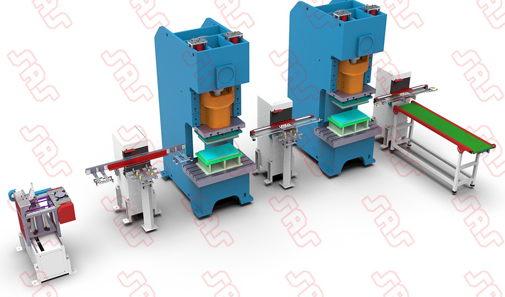 The small independent manipulator can be combined flexibly and does not limit the number of punches. The maximum lifting stroke can reach 250mm, and the intermediate station of the lifting product can adapt to the transfer production of different mold heights, and the mold adaptability is extremely high, especially for hydraulic press drawing parts. The control system can perform functions such as production scheduling, quantitative production, material receiving, and intermediate scrap product removal. The unused punches and manipulators can be closed at will according to the mold process. The system is intelligently judged, the operation is simple and convenient, and it is equipped with a product parameter storage function, which makes it easy and convenient for the whole line to change production.